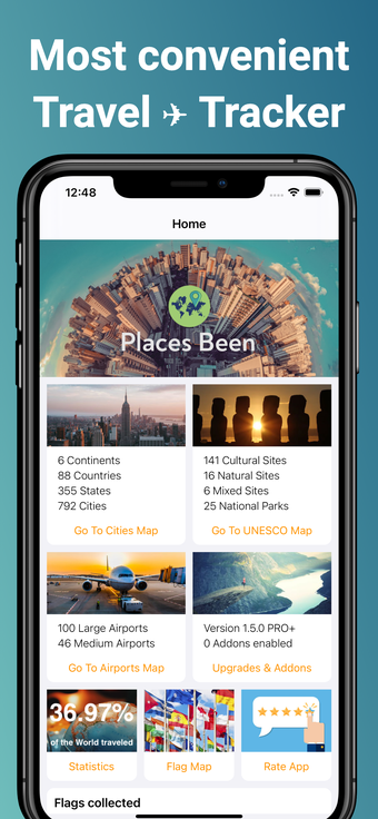 Places Been هو تطبيق لتتبع السفر مصمم لمستخدمي iPhone، يمكّنهم من توثيق وتجسيد تجاربهم في السفر. يمكن للمستخدمين بسهولة البحث عن المواقع التي زاروها ووضع علامات عليها عن طريق وضع دبابيس على خريطة سفر رقمية، والتي تبرز هذه المواقع مع أعلام البلدان المقابلة لها. يقوم التطبيق تلقائيًا بتجميع قائمة بجميع البلدان والولايات والمناطق التي تم زيارتها بناءً على المدن المعلّمة، مما يجعل تاريخ السفر سهل الوصول إليه.
